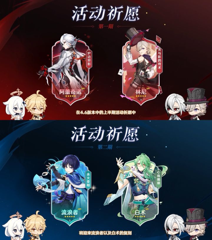4.6版本只有上下两个卡池,无集录祈愿卡池。