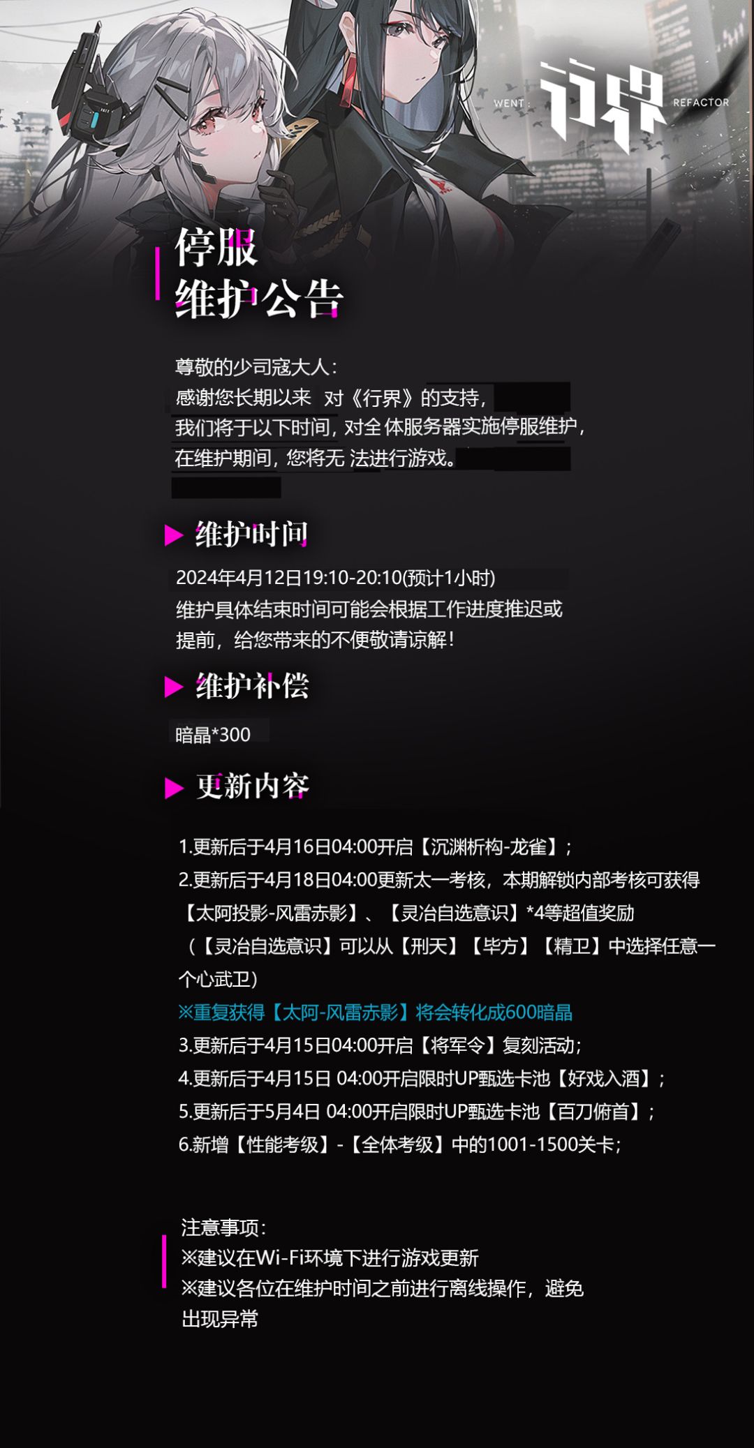 【行界】4月12日停服维护公告