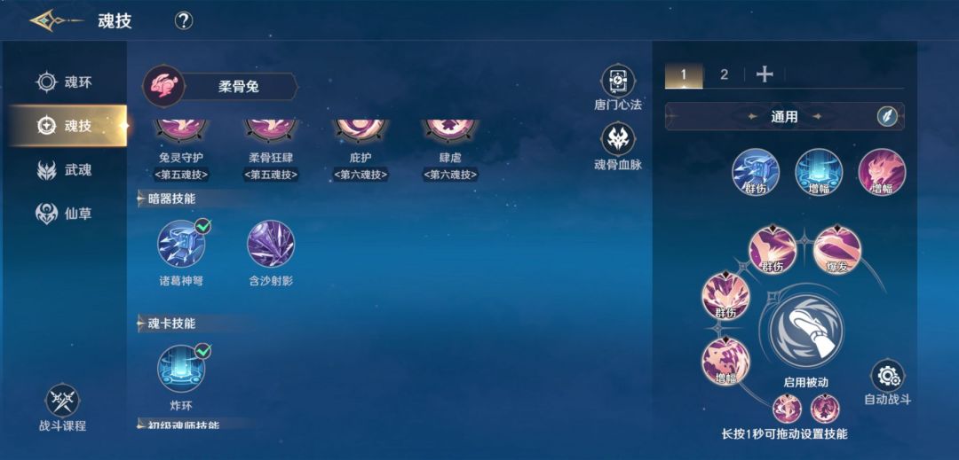 含沙射影:初级暗器,完成主线任务可获得。机括类暗器,可以发射三次,每次都伴随迷药类毒雾,而且钢针本身附带麻痹效果。30级魂师大意也会被重创。