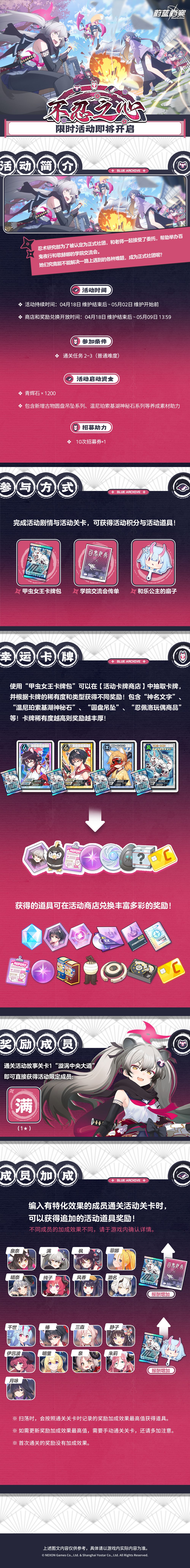 限时活动《不忍之心》即将于04月18日开启!阿洛娜为老师准备了活动指南,努力帮助忍术研究部完成委托吧,老师!