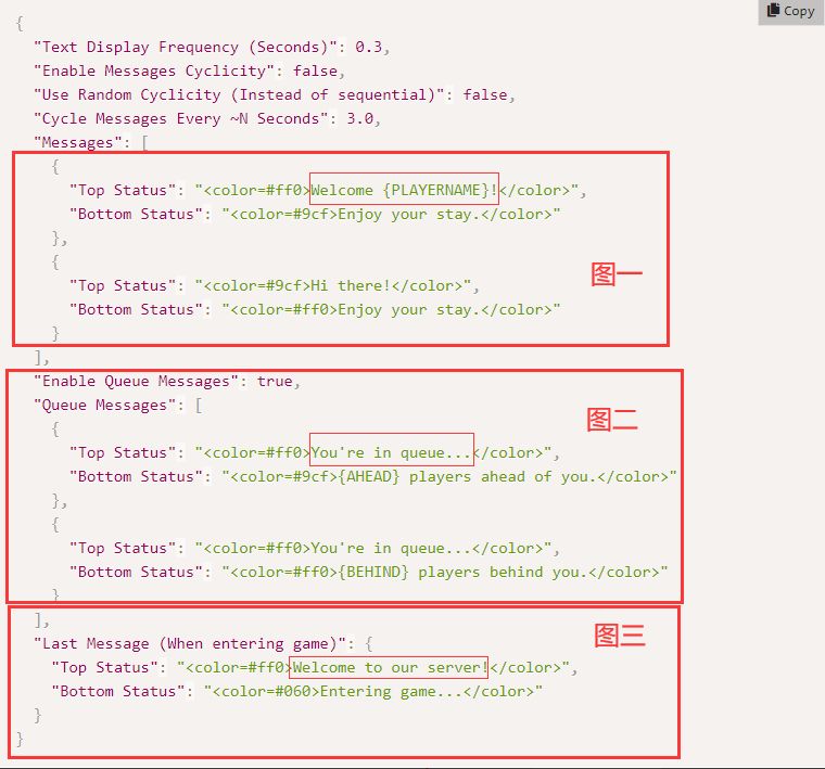 LoadingMessages:服务器加载消息(这个为进程加载时显示我们自己的链接等增加互动)