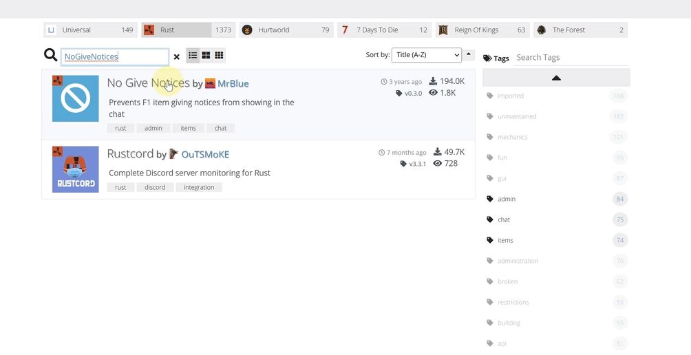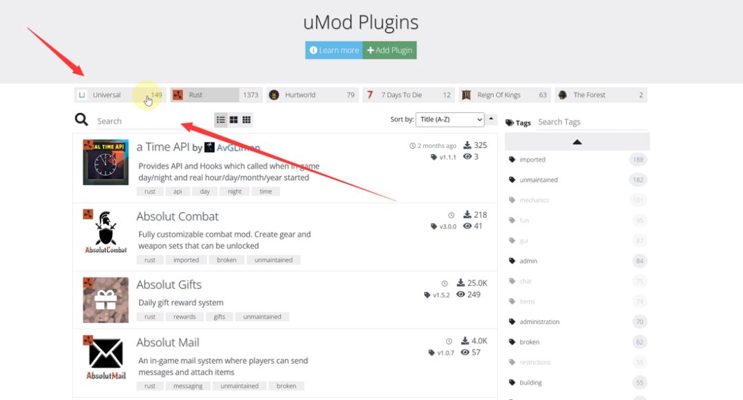 你想要插件都可以直接在umod直接搜出来,国内也有很多资源站比如:熊猫插件,rustbbs