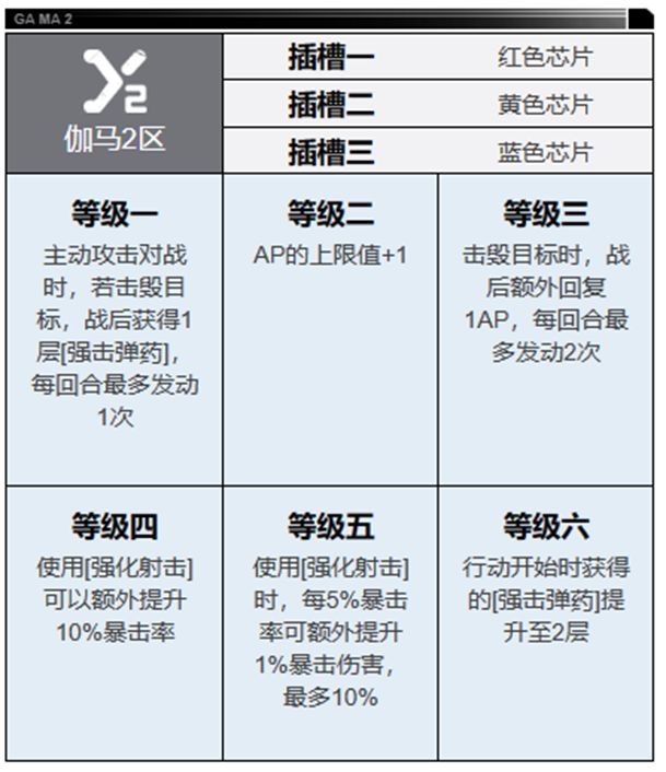 等级六:提高每回合获取的强击弹药数,保证持续输出能力