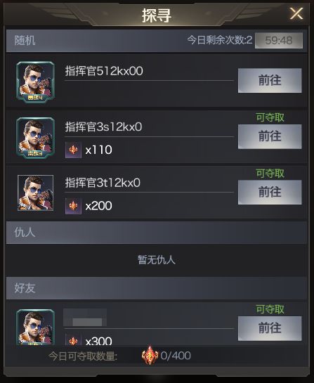 当然,指挥官们也可通过随机探寻陌生指挥官、反击夺取过您的敌人、夺取您的好友三种方式夺取其他玩家的星耀晶核。