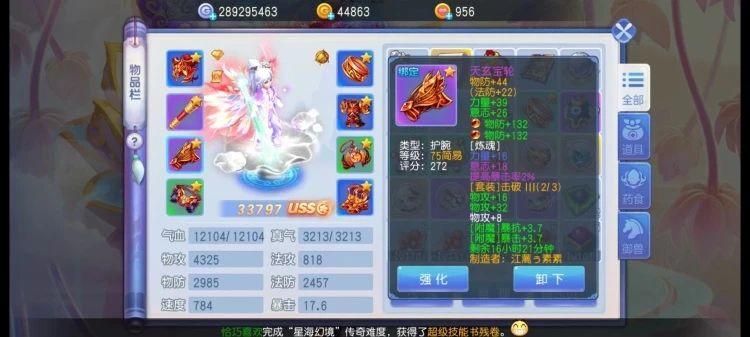 满基础护腕了解一下,对的没错,这件护腕的基础属性是全满的,而且附加属性也足足有65点!力量和意志的双附加,39力量加成非常高了,生存能力也因为26的意志产生变化!炼魂方面,物理必备的暴击没毛病,但是属性有点小问题,力量这么重要的属性是蓝色加16,有点忍不了!抽空换了它!!!