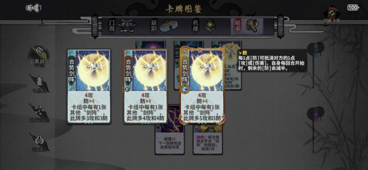 合势剑阵,常常被人低估的机缘卡,在卡组带着八张剑阵卡时拥有25/25的恐怖数值,让对手感受💩糊脸的力量,非常克制毒鳖以及一些未成型的阵容