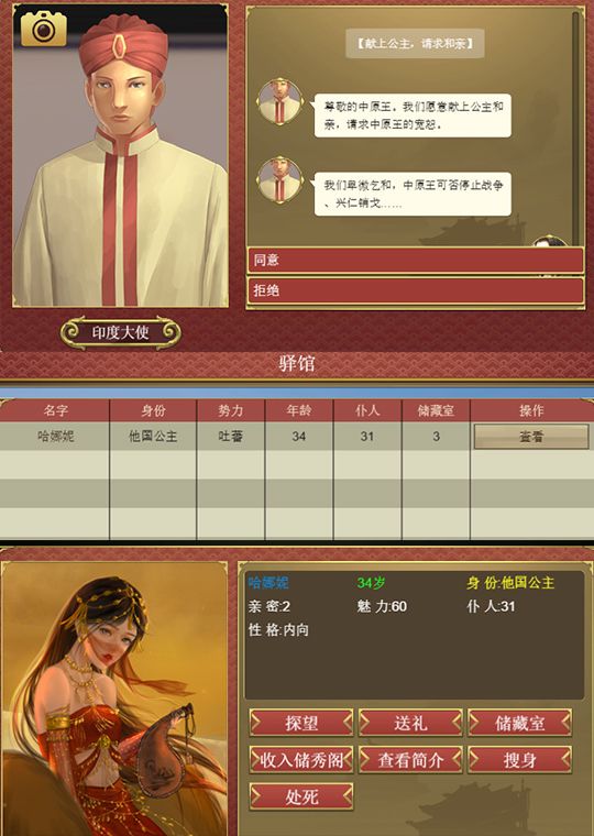 ※拥有该人物后,可以选择送礼、探望、搜身、查看私库、收入储秀阁、处死等操作