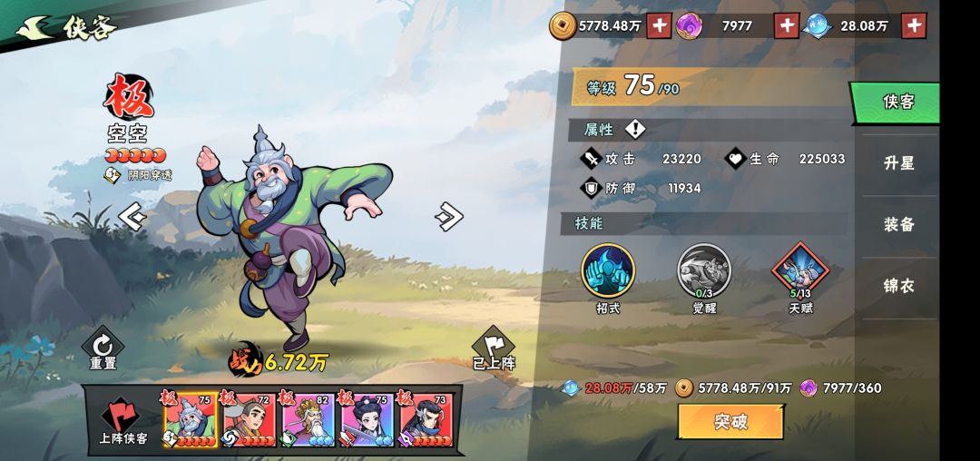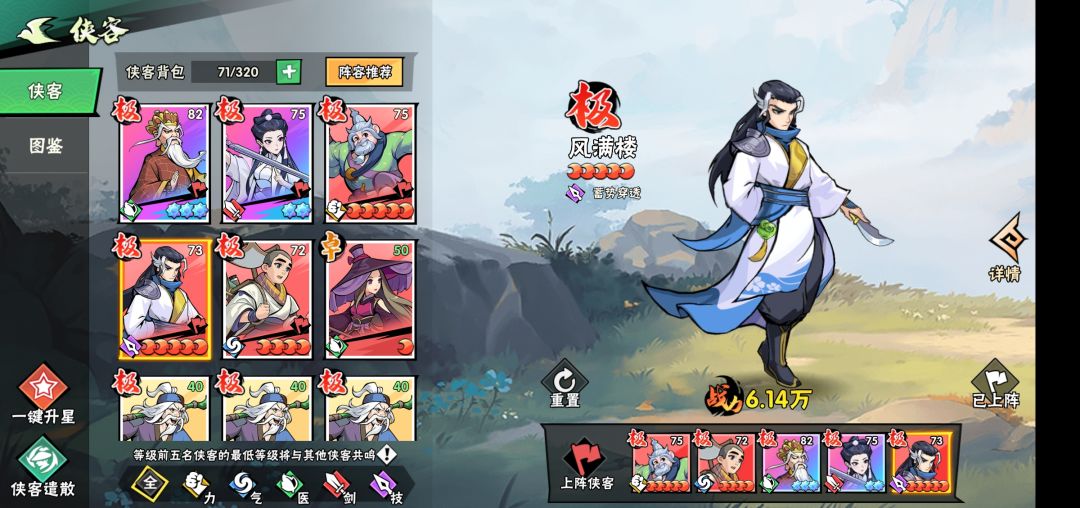 中期阵容推荐:圆觉+空空+风满楼+白灵儿+随意高星气系