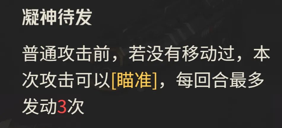 - 第4个增强点在于娜塔莉亚的专武“魔笛”,其被动技能【凝神待发】的原地【瞄准】的次数限制为每回合最多触发3次,这个对于凯莉来讲就是一个没有太大影响的调整了,对比维一之前预期的1-2次来讲也算是一个不错的消息了,后续造出娜塔专武后,凯莉目前的测评强度还会有一定的提升