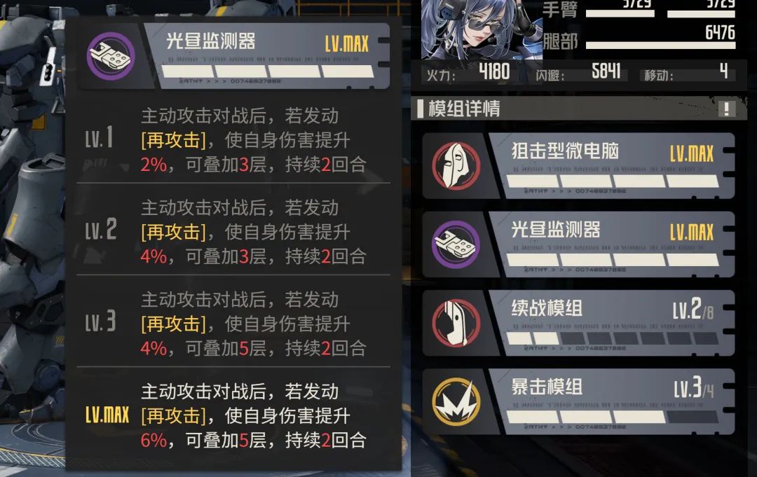 此外【续战模组】配合【光昼监测器】也能更强的提供增伤辅助效果,但这需要一定的机兵练度才行,大家注意,另外我们还需要注意以下几点: