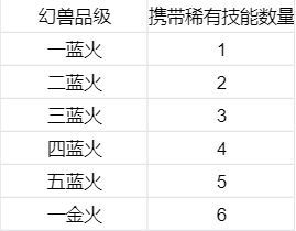 幻兽可升至最高5星。当升至5星时,会根据携带稀有技能的数量而在交易行中显示蓝火/金火。五星才是幻兽的起点