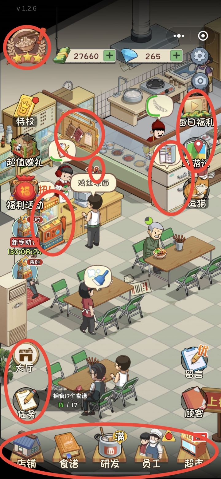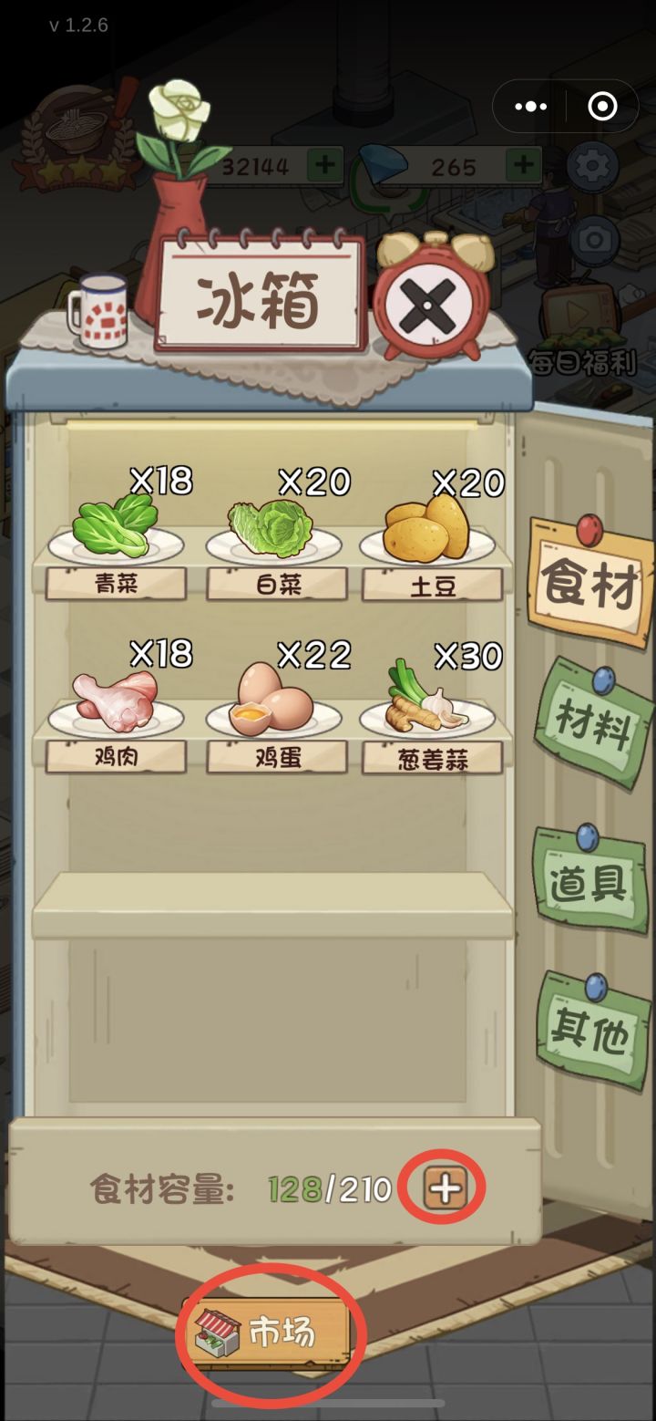 左下角任务—右侧环游记—研发新食谱—冰箱市场进货—解锁店铺新家具
