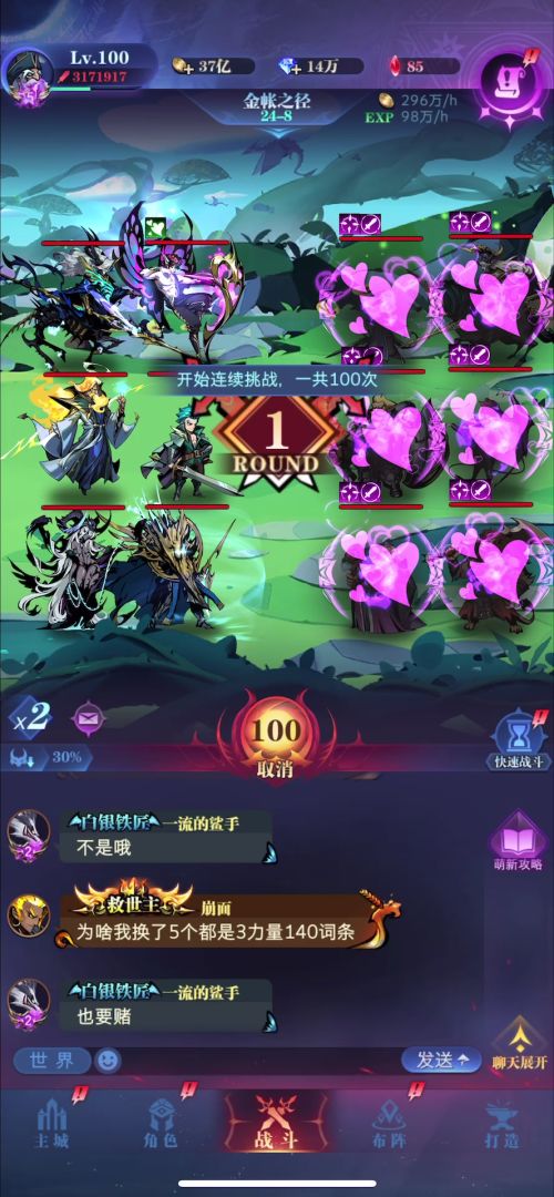图7这关由于哈迪斯的存在,我的白羽必定被秒,因此我选择把白羽换成伊万。没有白羽的亡灵队在只有105级的情况下根本打不死37图的女主,同时莎莎因为在C位有属性加成,也没有办法被链接死。此时威廉的作用一方面是阻挡血狮的连斩,另一方面是斩杀被打残血的莎莎,如果运气好也可以顺便击杀残血的女主。接下来只需要主角控住魔导就过了,哈迪斯就是搞笑的。
