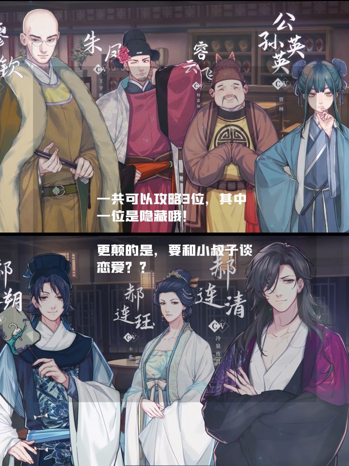 据介绍,可攻略的一共有三位,其中一个是隐藏人物;而且据开发者说,玩法构架上和传统的乙游有很大的区别。真的狠狠期待住了!!