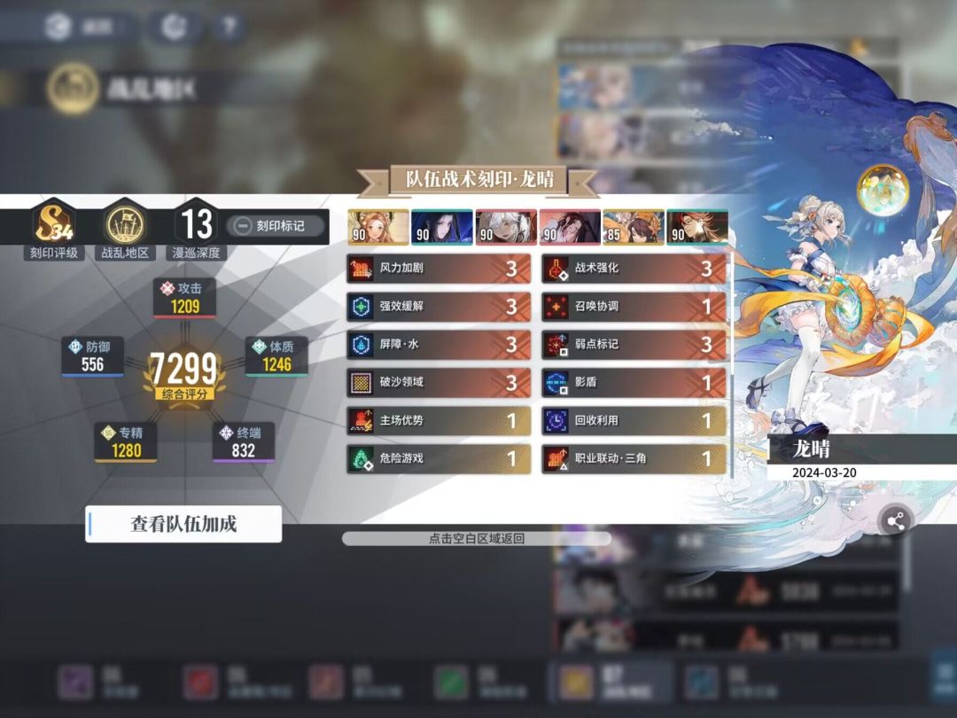 关于烙痕的选择,激励和技能优先,激励卡2-3张,不同角色适用的烙痕不同,这里也不详细介绍了。因为我的烙痕也比较平民,所以一般会放弃终端卡,靠漫寻中属性提升把终端拉到900+,让出位置给其他属性。