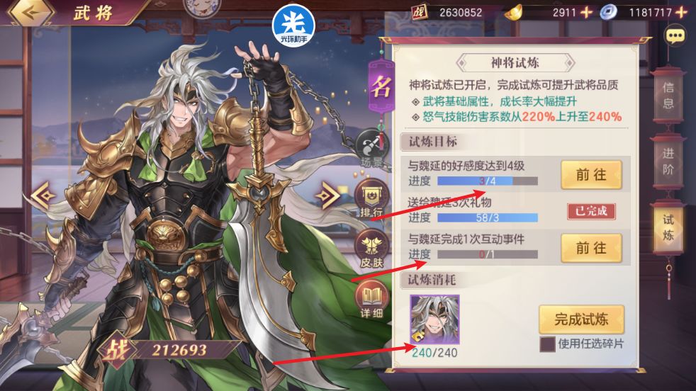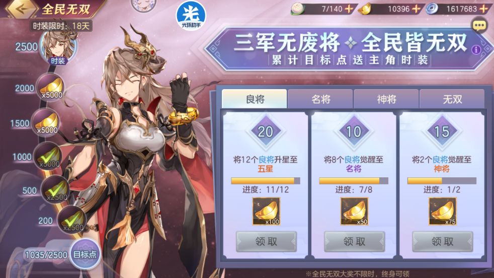 背包里如果有武将可以升级了,记得留互动次数和好感度升到4级。