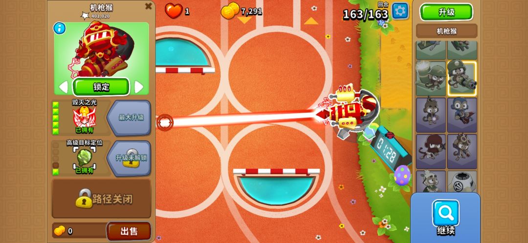 目前目前这关的主思路是在包含清杂能力的同时补上输出,胶水炮手中路4级加上别的四级的初始猴加上侯村应该是可以过的,用冰猴加胶水,再加大炮加侯村应该可行,如果是没什么等级的新手的话,可以尝试用胶水这关胶水封神