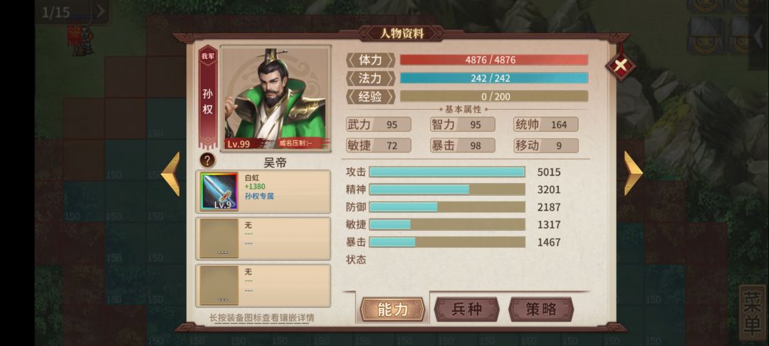 还是这些装备,区别是这次没有佩3吕布,而是配了3关羽,方便多次行动