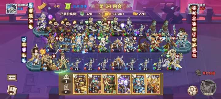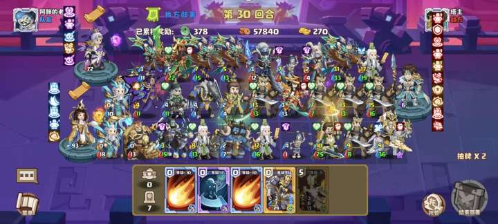 特别鸣谢一区山高水长大佬的陪伴,体验了半个月,共通关了两次炼狱级爬塔,塔主截图如图,有经验的小伙伴应该都明白了,炼狱级塔主目前最好的通关方式就是占满格子每回合摸8血获胜。先说说兵法的抓取,我个人认为召唤系兵法及回血兵法遇到必抓,炸怪其次,其他的基本没用。再说说将士选择,我个人的打法前期蓝卡抓些打飞行的混一混,超过五费的卡及技能卡尽量不要抓,走一个极简流,好处是防止鬼抽,增加key牌进场压制boss。(小贴士:一般我到70层,手牌保持在14张左右)那这14张我是根据对各层boss的攻克理解所挑选的,透露点吧重要的将士(1.冷苞2.甘宁3.吕蒙4.夏侯5.刘表6.觉醒马超7.刘备8.司马懿9.董卓10.还魂11.祭天12.乐进或孙策)排名先后取决于其重要性,尽量跟队友沟通各自的选将,比如刘表董卓一个人带就行,配酒方面没有固定思路,这里就不展开了,相信各位小伙伴异想天开的能力比我强多了,这篇只介绍如何运营及我个人的运营思路提供给各位,最后祝各位都能多通关拿满奖励!我是小亡,期待下次再见![[表情_送花]](https://img.tapimg.com/market/images/68b3dc8473df915ad2b85da5efef4f56.png)