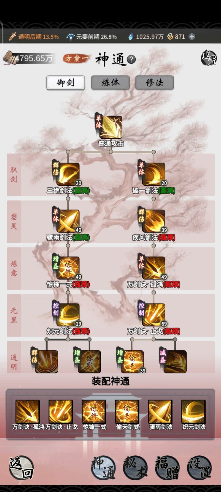 来个大神搭配个人界剑修神通释放顺序 感觉现在有力没处放