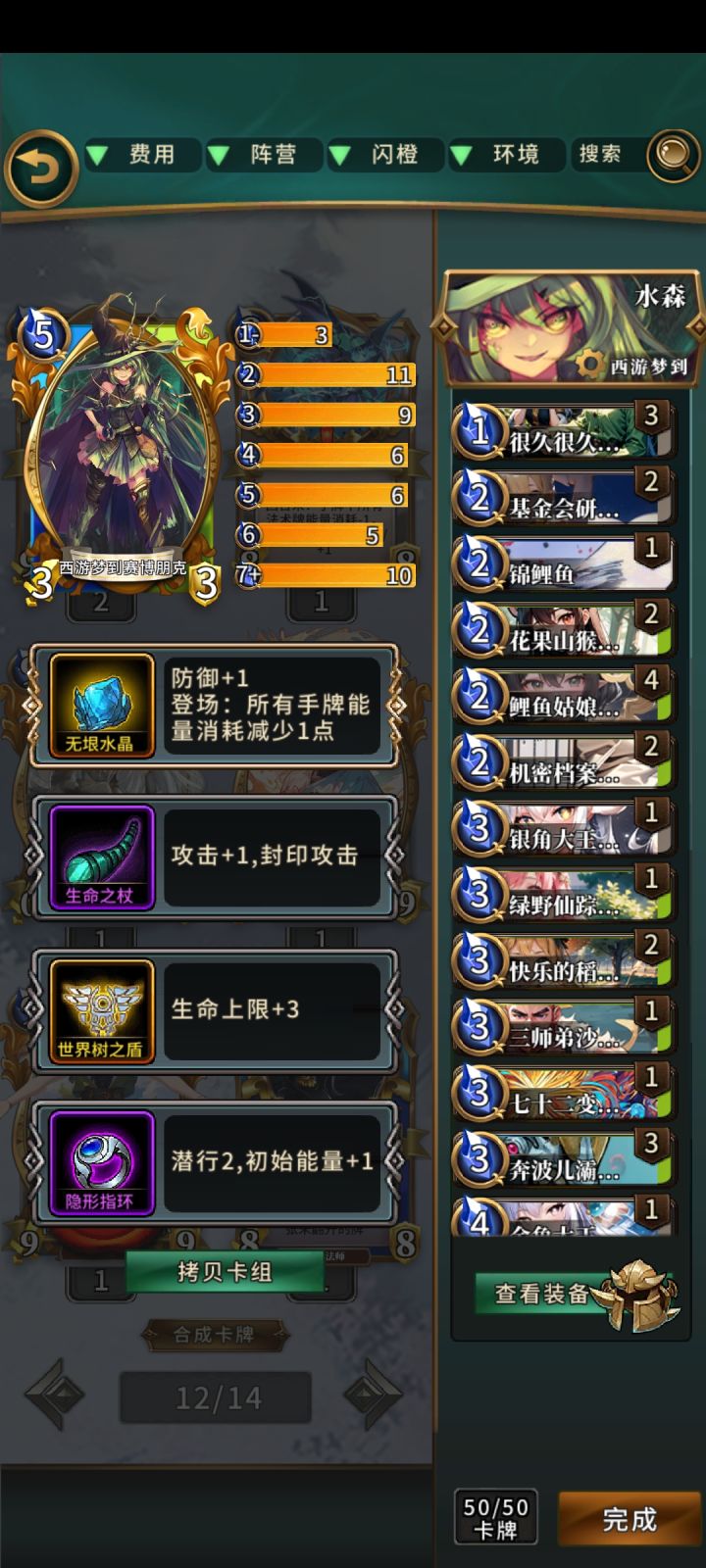这套思路主要就是快速跳费铺场,外挂赛博和童话用来跳费和解场,本体带水晶当个工具人,变形主要用来弥补后期外挂体系低费怪的缺陷,两个二费的花果山猴子可以换成饥荒