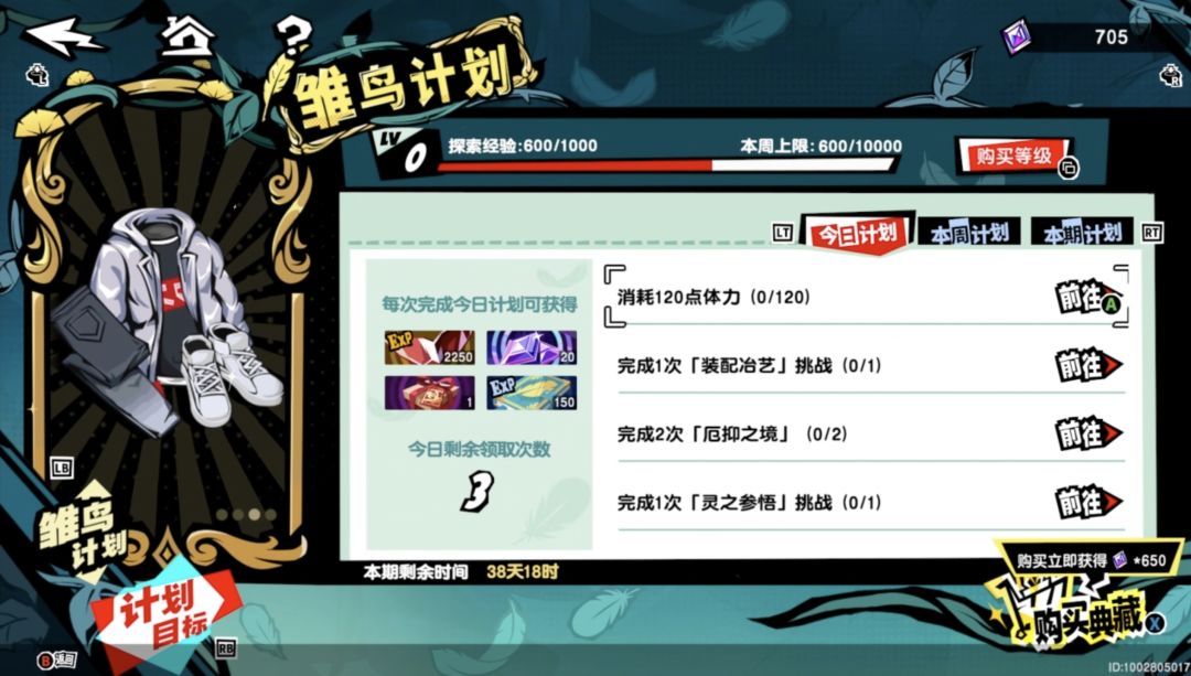 3、还有上下翻页(比如活动界面选择启程特典、试炼挑战,当然还包括设置、商店、背包这些)竟然是用左右肩键LB/RB进行的,界面和实际操作完全矛盾。而契约、怪盗养成里面又是用十字键操作,计划里面又是用LT/RT操作,只有目标里面是对应得上LB/RB切换逻辑。操作逻辑最混乱的还得是“厄抑之境”,把LB/RB/LT/RT/十字键全都给用上了,都不知道哪个操作对应哪个了。