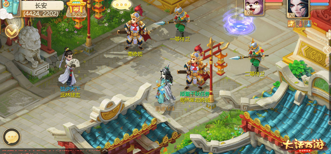 “版载千秋”活动正式开启后,等级≥80级的玩家,可以组队到长安城“皇宫门口”,找到“御林军左统领”领取“抄写经文”任务。侠士们根据任务指引,找到相应的罗汉,就能进行【抄写经文】任务。