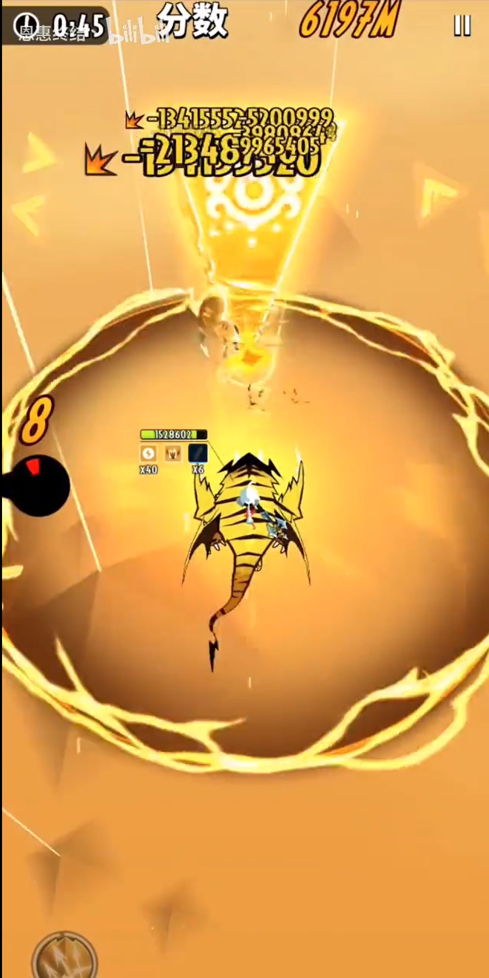 由于之前蓝蚊子的原因,现在我们一定是满血。故我们在可以攻击到BOSS的同时,在左边贴墙硬抗导弹伤害吸收子弹,等到狩猎状态结束时释放