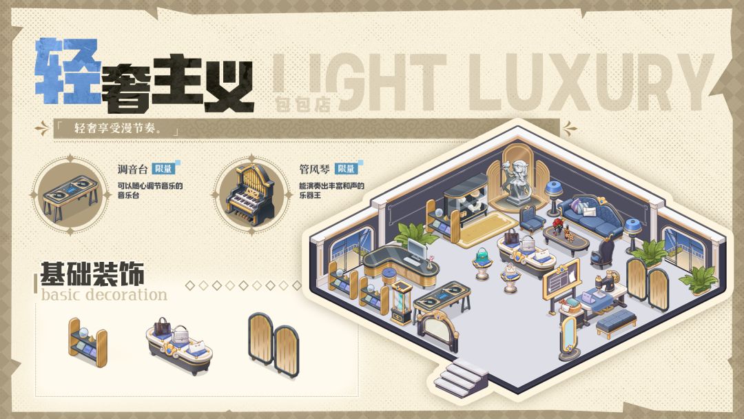 在《开间服装店》中,有一个“LIGHT LUXURY”装修风格,简直就是轻奢主义的完美诠释!