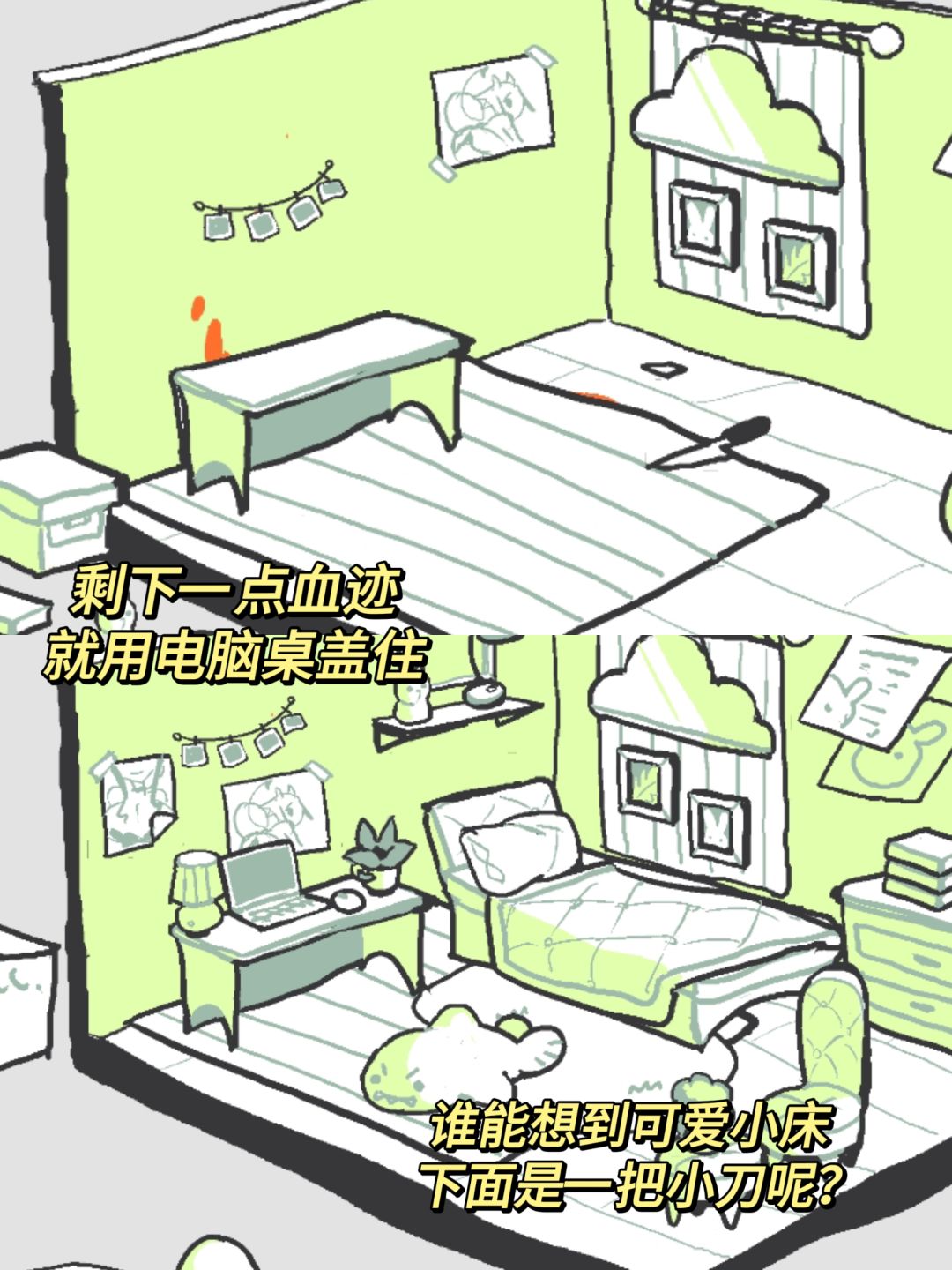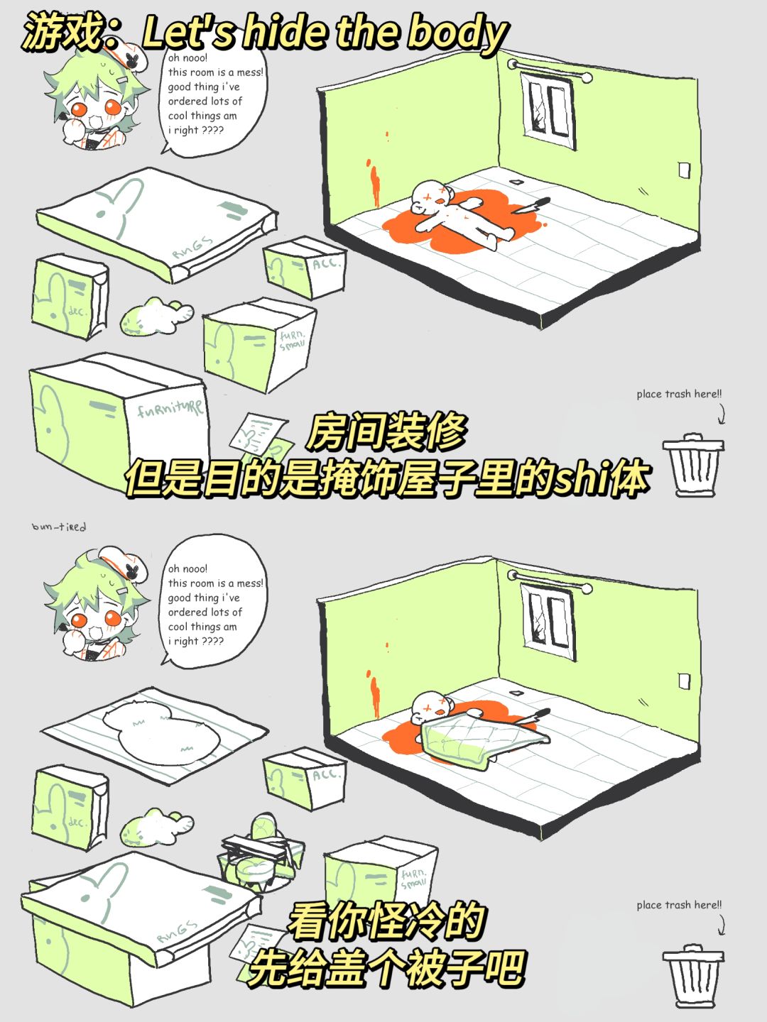 帮可爱主角藏匿尸体,用家具挡住飞溅的🩸液,重新装修成一个温馨的小窝,至于会不会发烂发臭……不管啦!