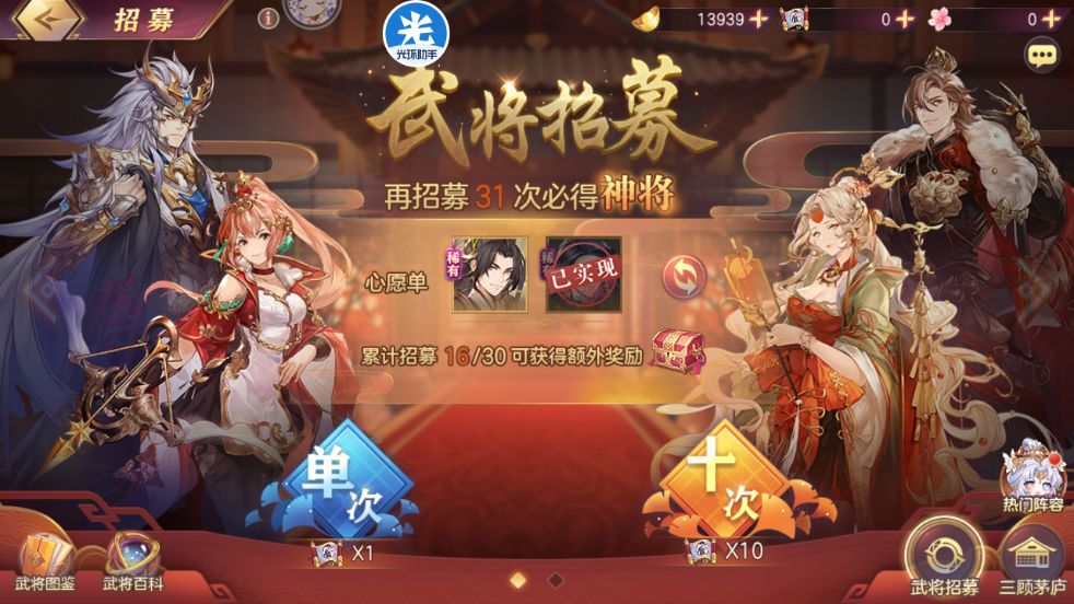 武将招募出了一个司马师,三顾没出。
