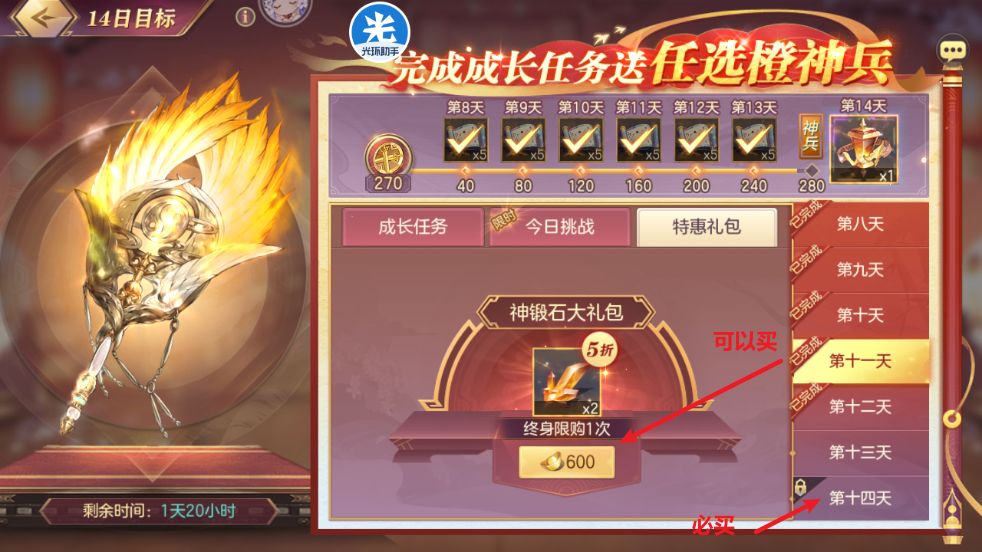 14天目标里的特惠礼包:第十一天的这个可以买,第十四天的这个必买的,性价比很高。