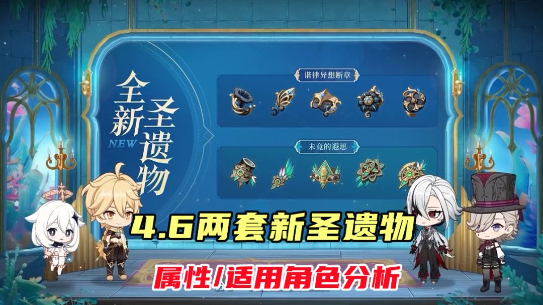 4.6版本将新增两套新圣遗物,而在官方发布的前瞻回顾长图中,还展示了这两套新圣遗物的详细属性。下面就来分析下新圣遗物的属性、适用角色以及是否值得刷。