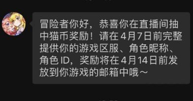 这个直播间抽奖每个赛季都有,只能用手机看,电脑上不能抽奖,这次人数在1600左右。赛季直播现在属于一个比较稳定的活动了,直播时长为2小时,抽奖会在比赛间歇进行。参与方式简单,只需要挂机和回复特定文字,剩下就交给欧气。按本次赛季观看人数作为参考,每次参与人数大约为1400~1800人,中奖概率在0.45%~1.25%之间一共五轮抽奖(前4次1000猫币,第5次为1980猫币)。
