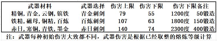 注:熔炼等级(向下取整后) x 1.2 + 武器初始伤害