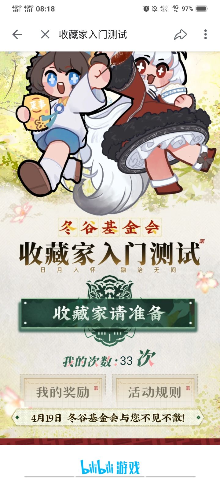 2,B站答题活动,通过哔哩哔哩游戏页面进入,答题文物相关的问题,通过后可领取限定称号!和实物奖励!称号不做还没直接绝版!