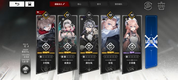 为了自动打污染5科研了一个邪门冰火队,打得慢了点但是真的不会死也不卡费。。。(实在是没有办法)