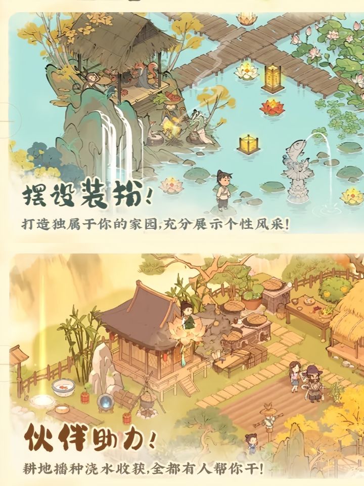 ✨一款治愈休闲的古风种田游戏,玩家扮演在仙山开荒的弟子,种地、养殖、钓鱼、放置等等。
