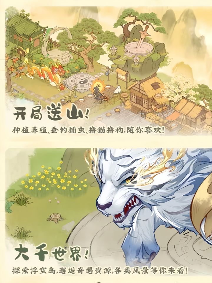 ✨修仙种田结合,内容很多,可以自由装饰家园、探索浮岛、制作美食、御剑飞行等等。