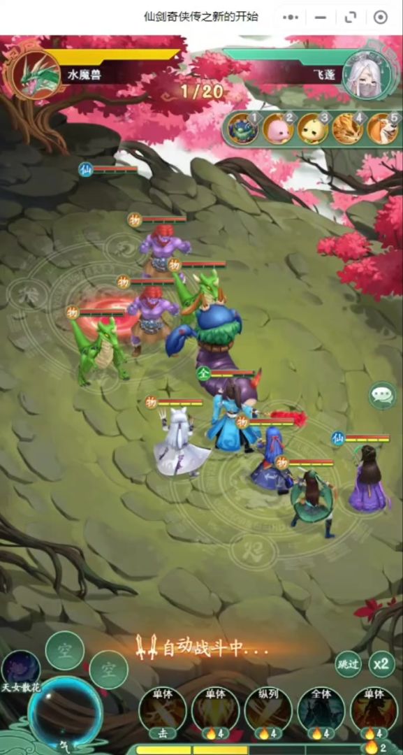 ②主角:需要有武神(如果没有武神的话,可以通关试炼窟10层有一本免费武神),如果没有白3的时候,如果自身可以抗住第二回合,则第二回合不要释放武神;如果自身扛不住第二回合,则可以在第二回合释放武神(由于主角死了,我们的酒剑仙的战斗顺序会变为4号位,能在对方水魔兽之前出手);这样可以确保对方的水魔兽释放不出群体性的aoe大招