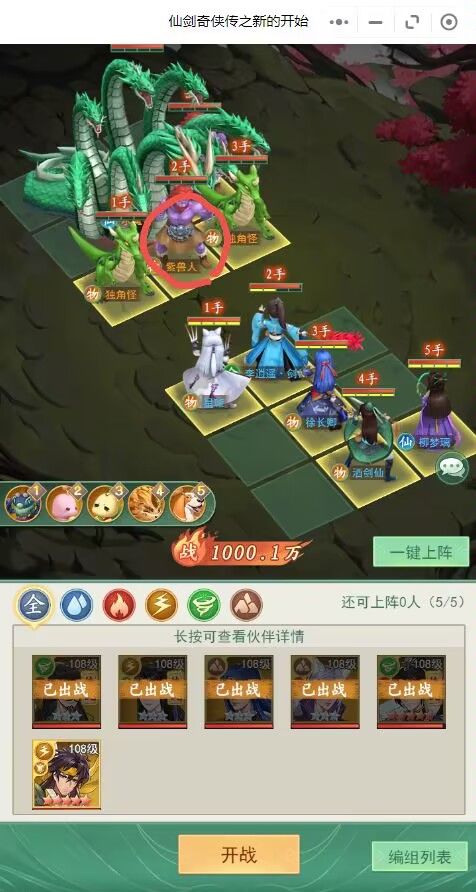 1.阵容配置:如图所示,星璇(白3)、主角、徐长卿、酒剑仙(白3)、柳梦璃