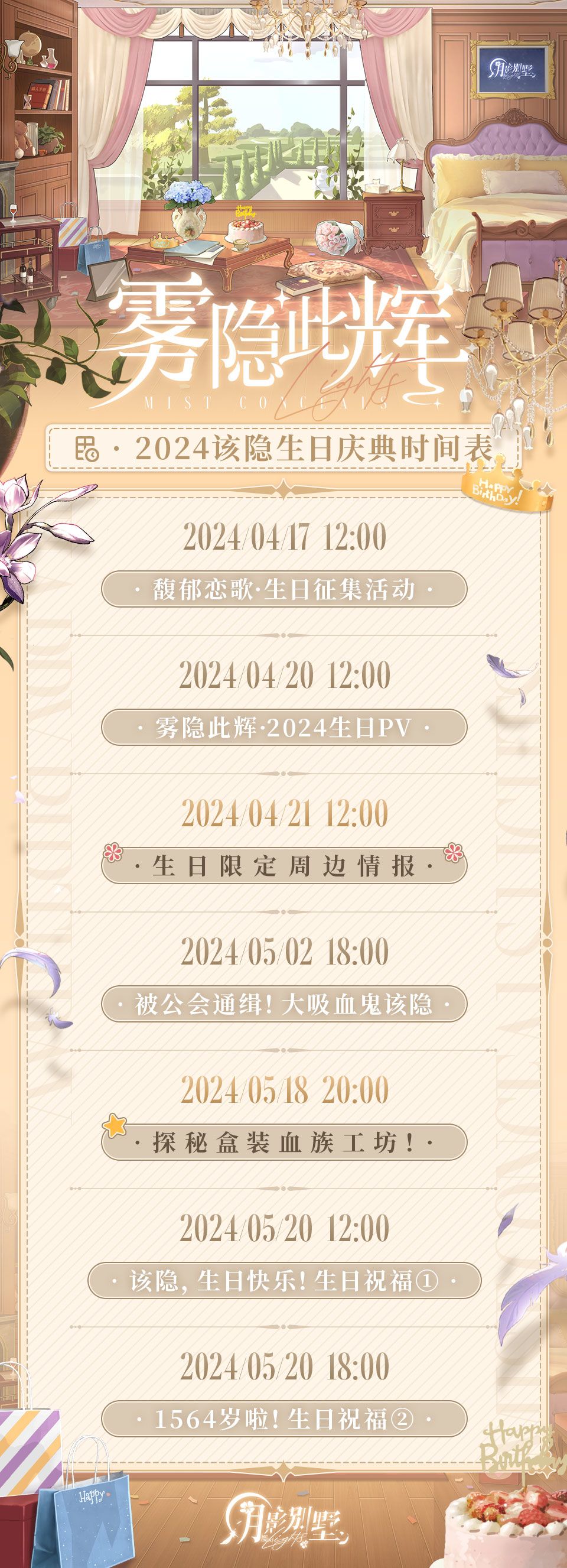 【月影别墅】雾隐此辉·2024该隐生日庆典时间表