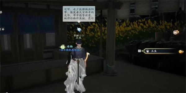 4、与NPC对话后选择选项二询问身世,等待对话结束。