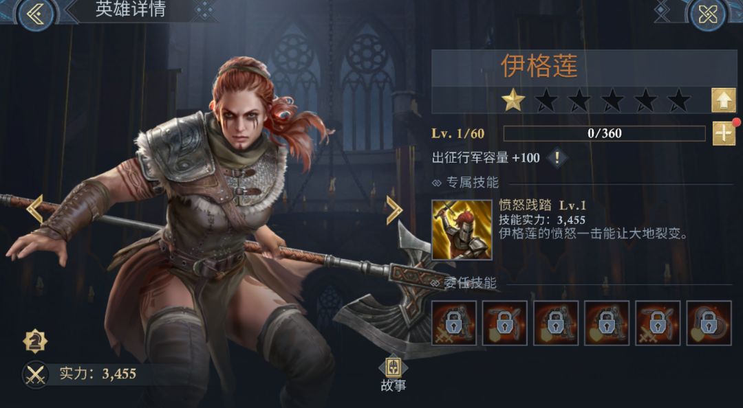 在前中期一般会建议大家养弓兵英雄,伊格莲是骑兵英雄,主要在30堡以上(骑兵9阶以上)才会有较好的表现空间。伊格莲可使骑兵概率进行2次攻击,概率不高,但随着回合数的提升会趋于稳定。