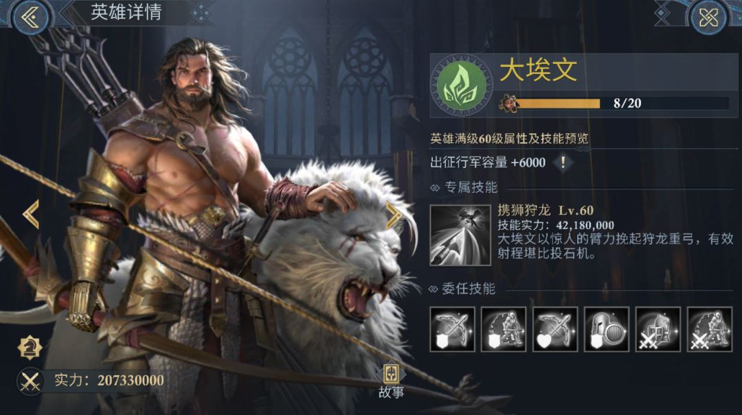 丁德拉是十分优质的弓兵英雄,专属技能可使弓兵部队在攻击时额外造成一次伤害,并且削减目标的防御数值,可有效提升己方部队的输出效率。在英雄提升等级后,可分别解锁各大“部队增益型”委任技能,整体会侧重于防御、生命加成,可提升队伍的生存能力。