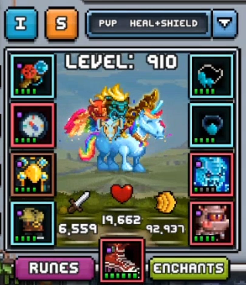 t18远古武器(fury的模式)+t16水神话副手+t15远古头(freeze全队)/t21远古头(概率增加自己回合版)+t17tg石头衣服+t19tg神话项链(给圣盾技能)+t14🚥(速度+强击+10%攻击扩散奶模式)/t20戒指(这套中不是特别重要的一个装备位置)+速度系的acc(金翅膀最强)+看d4特效配一个pet+全速坐骑+全速符文附魔(附魔最好低功高速)+sp回复6边