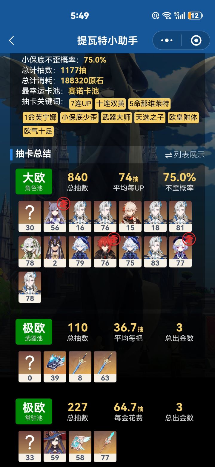 没忍住,把票都抽光了,白嫖不了几张票了,大概率得氪金了,去年10月龙王卡池开始玩的就氪了小月卡,之前交易猫买了个号玩了一个月就被找回了,平台退款就花了80多天