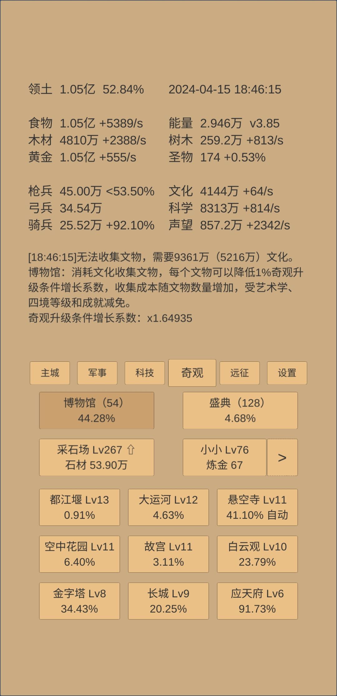 战力1300万,80亿木材和20亿黄金全部用来升级新出的项目了,所以提升不大,建筑上限277,百济总算过了,接下来打三境,吕宋太强暂时不在计划,攒了很久的药感觉过了百济也没啥提升,养老吧慢慢