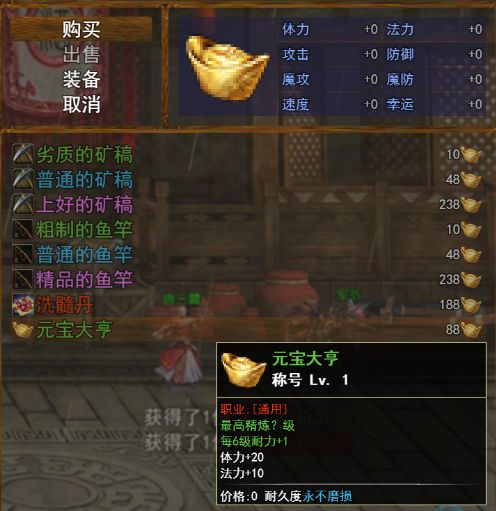 往左边走,用元宝购买你想要的装备