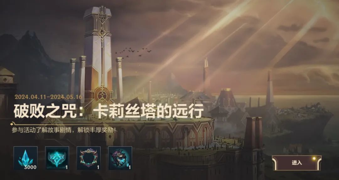 跟随卡莉丝塔完成远行,截止至5月16日,沉浸体验游戏背景,完成任务积累步数,解锁故事剧情,就有机会获得“暗影纪元”头像、“殒落福光”头像框、“有两下子”局内表情和蓝色晶石*3000奖励。